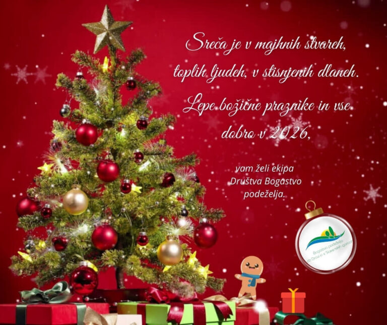 Sreča je v majhnih stvareh, toplih ljudeh, v stisnjenih dlaneh. Lepe božične praznike in vse dobro v 2026, vam želi ekipa Društva Bogastvo podeželja.