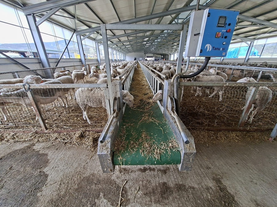 Voluminozno krmo pridelujejo na lastnem posestvu in z dokupom iz okoliških kmetij. Krmni obrok voluminozne krme sestavijo v mešalni prikolici, ki dozira krmo na transportni trak med dvema linijama boksov in na ta način strojno obvladujejo krmljenje ovc v hlevu. Koncentrirano krmo dobijo ovce v molzišču v času molže. Glede na kondicijo živali in rezultate molže je bilo opaziti, da gre za urejeno proizvodno čredo, ki dosega dobre rezultate. Povprečno dosegajo tudi do 3 litre mleka na ovco na dan v času laktacije.